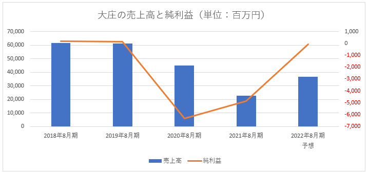 居酒屋店「庄や」を運営する大庄が、2022年7月15日に業績の下方修正を発表しました。2022年8月期は4億5,500万円の純利益を予想していましたが、7,600万円の純損失へと一転。6月から8月にかけて32店舗もの退店を決定し、店舗閉鎖等に係る減損損失1億3,900万円の減損損失が業績に大きく影響しました。