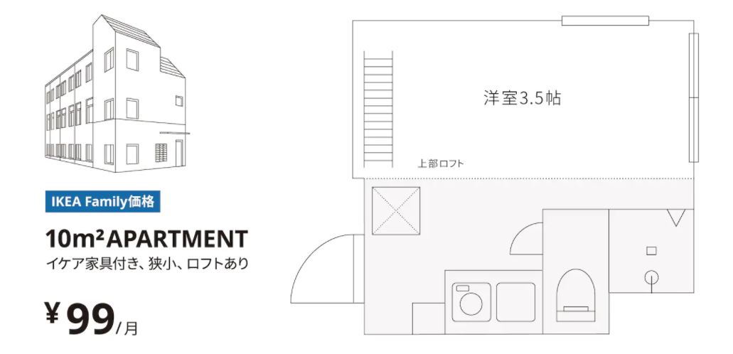 家具販売世界最大手のイケアが、東京都新宿区にあるアパートの1室を自社製品で固めた「Tiny Homes」を発表した。2021年12月3日まで入居者を募集し、月額99円で約1年間貸し出す。室内面積はわすか10平方メートルだが、3.5畳(約5.8平方メートル)のロフトがあるため、実質的には15平方メートル程度の小型ワンルームマンションに相当する。なぜ世界企業のイケアが、たった1室の狭小アパートを貸し出すのか?
