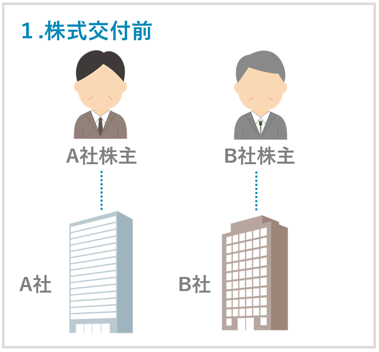 なお、「株式交付」により、「株式交換」と同じく完全子会社化を行うことは会社法上可能と解されており、その場合には、株式交付子会社B社の株主はA社のみとなります。