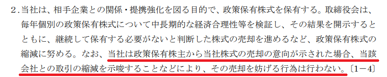 確かに、2023年2月10日に改正された大和ハウス工業のコーポレートガバナンスガイドラインには、政策保有株主から売却の意向があった場合でも、取引の縮減を示唆することはないと明記しています。
